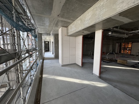 日本ERIとビューローベリタスジャパンによる建築中間検査を実施、1階コンクリート打設が完了しました。2階コンクリート打設、柱壁配筋、型枠建込、および3階柱梁圧接配筋の様子です。