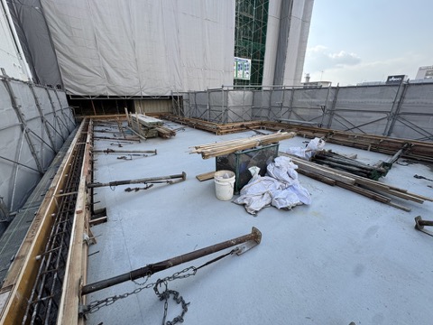 1階壁下地補修。2階せき板養生。3階柱壁配筋、型枠建込、コンクリート打設開始〜完了。4階柱壁配筋、型枠建込を行いました。