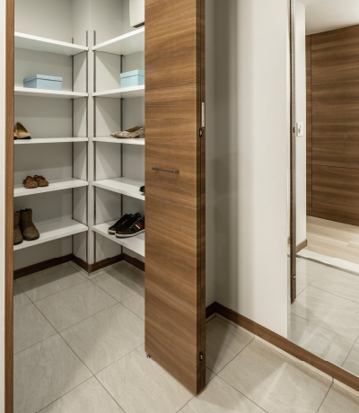 大容量のウォークインクローゼットを全邸に標準装備。衣類やバッグ、靴類はもちろん、使わない季節家電などの収納にもおすすめ。いろいろ便利に使えます。