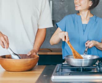 以前はあまり料理しなかったのに、この使いやすいキッチンでは二人並んで料理を楽しめる。このちょっとした週末の時間が結構気に入っている。