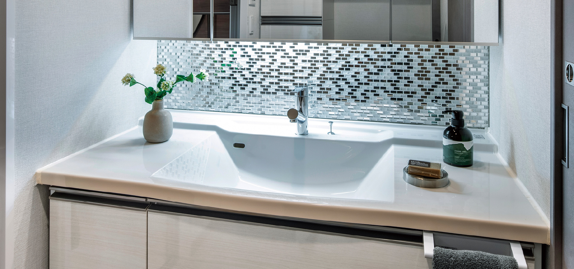 天板とボウルの継ぎ目がない一体型カウンタートップ。