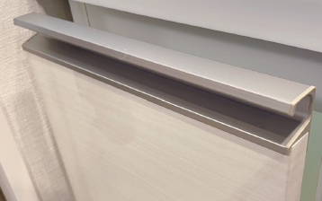 ボウルの下には、スムーズに開閉できるレール引手を設置。さらに、便利なタオル掛けも備え付けました。