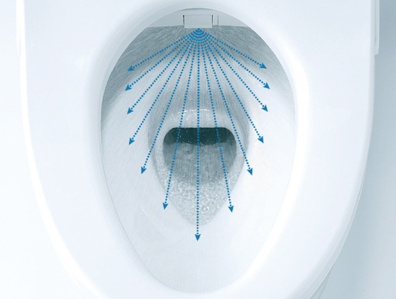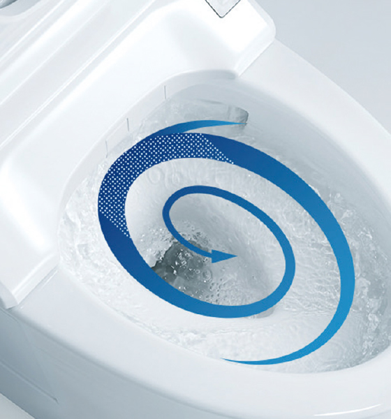 渦を巻くトルネード水流が、少ない水量を有効に使ってしつこい汚れもきれいに洗浄します。