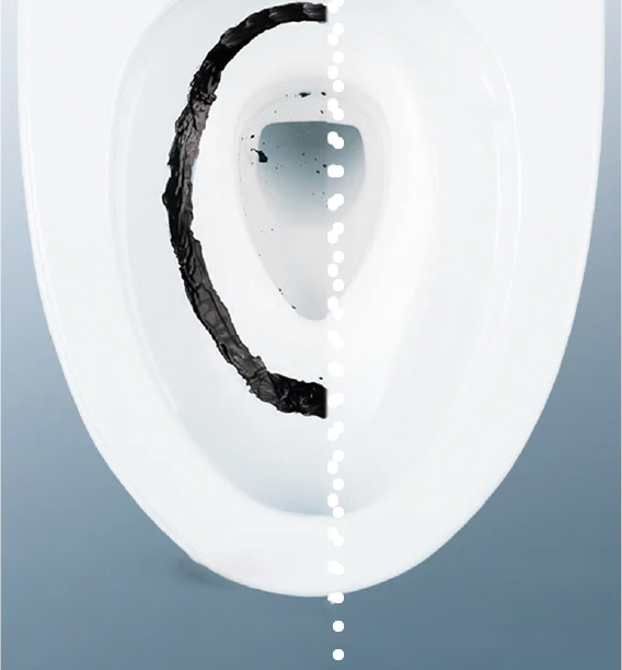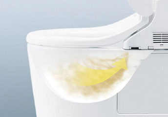 自動で便器にミスト(水)をふきつけて水のクッションを作り、汚れをつきにくくします。便器表面をツルツルにする「セフィオンテクト」との相乗効果で、便器を汚れから守ります。