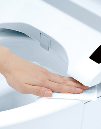 便座とノズルの素材に防汚効果の高い樹脂を採用。樹脂が汚れをはじくから、サッとひと拭きでお手入れ完了です。