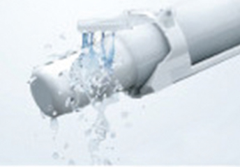 洗浄前後にケースの中で最大吐水量を噴出。ケースの中ではね返った水で、勢いよくノズルを洗浄します。さらにノズルが噴出する時にノズルの本体をしっかり洗浄します。